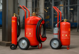 O extintor sobre rodas tipo carreta é um equipamento de combate a incêndio de alta capacidade, ideal para situações que exigem maior volume de agente extintor e facilidade de mobilidade. Recomendado para áreas industriais, portos, aeroportos, refinarias, galpões logísticos e locais com riscos elevados de incêndio.